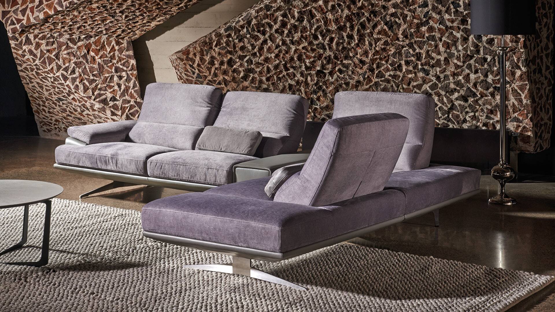Модульный комплект для гостиной • Модули, расположенные в виде продольных или угловых систем (в двух вариантах исполнения) • 3-ступенчатая регулировка угла наклона спинки с дополнительной регулировкой наклона верхней части спинки • Опция: в подлокотнике есть возможность использования выдвижного ящика с двухтактной системой и механизмом мягкого закрывания • Опция: дополнительные варианты оснащения выдвижного ящика на выбор – светодиодная лампа, панель питания с разъемом USB и индуктивным зарядным устройством или два контейнера из нержавеющей стали • Крышка на выбор из широкого ассортимента кожи и тканей коллекции Kler • Металлические ножки (направляющие) – матовая нержавеющая сталь (опция: порошковое покрытие в 6 цветах на выбор).