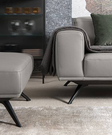 Современный комплект для гостиной, демонстрирующий классическую гармонию и умеренность – составляющие его модули представляют собой композицию, в которой ни одна часть не нарушает законы целого. Тонкая платформа, поддерживаемая наклонными ножками, несет на себе приятно раскладывающиеся подушки сидений и откидывающиеся спинки. Здесь есть все, что вы ожидаете – и непринужденная элегантность, и глубокое расслабление.