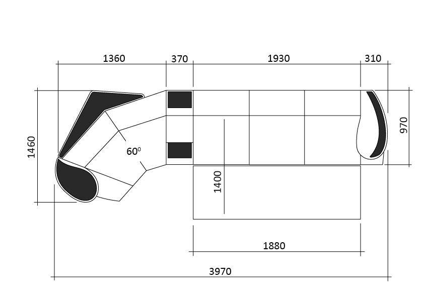 Размер (ШхГхВ): 292х239х99 см. Регулируемые подлокотники.