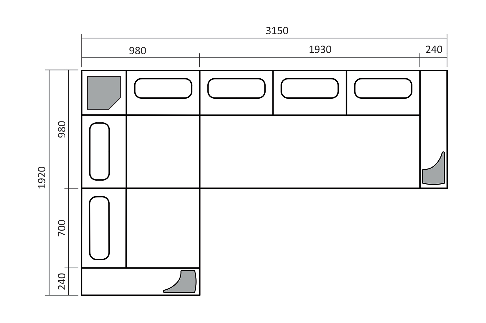 Наполнение сидения дивана состоит из независимого пружинного блока (каждая из пружин которого помещена в отдельный чехол из износоустойчивого материала. Данное решение позволяет каждой пружине сжиматься отдельно от других, что придает сидению высокую точечную эластичность) и высокоэластичного пенополиуретана, что позволяет достичь максимального комфорта сидения дивана.