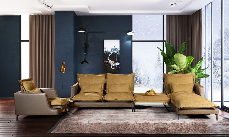 - Отсутствие технической ткани на видимых частях дивана, а также вариативность комбинации модулей, позволяют покупателю примерить на себя роль дизайнера.