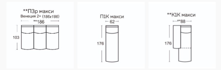 Размер (ШхГхВ): 369х331х104 см. Место для постельных принадлежностей, шезлонг, электрическая функция релаксации, раскладная кровать, место для хранения