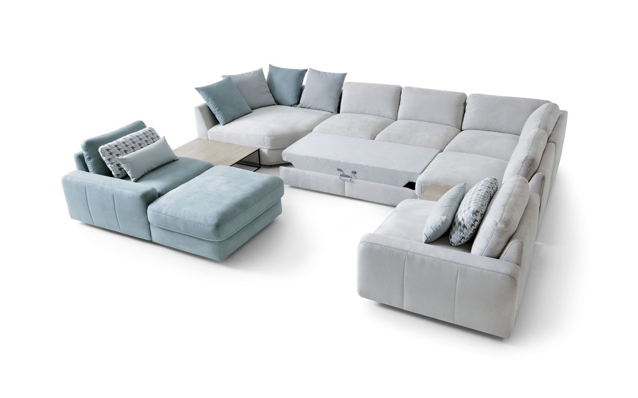 Модульный диван с индивидуальной конфигурацией для гибкой планировки.