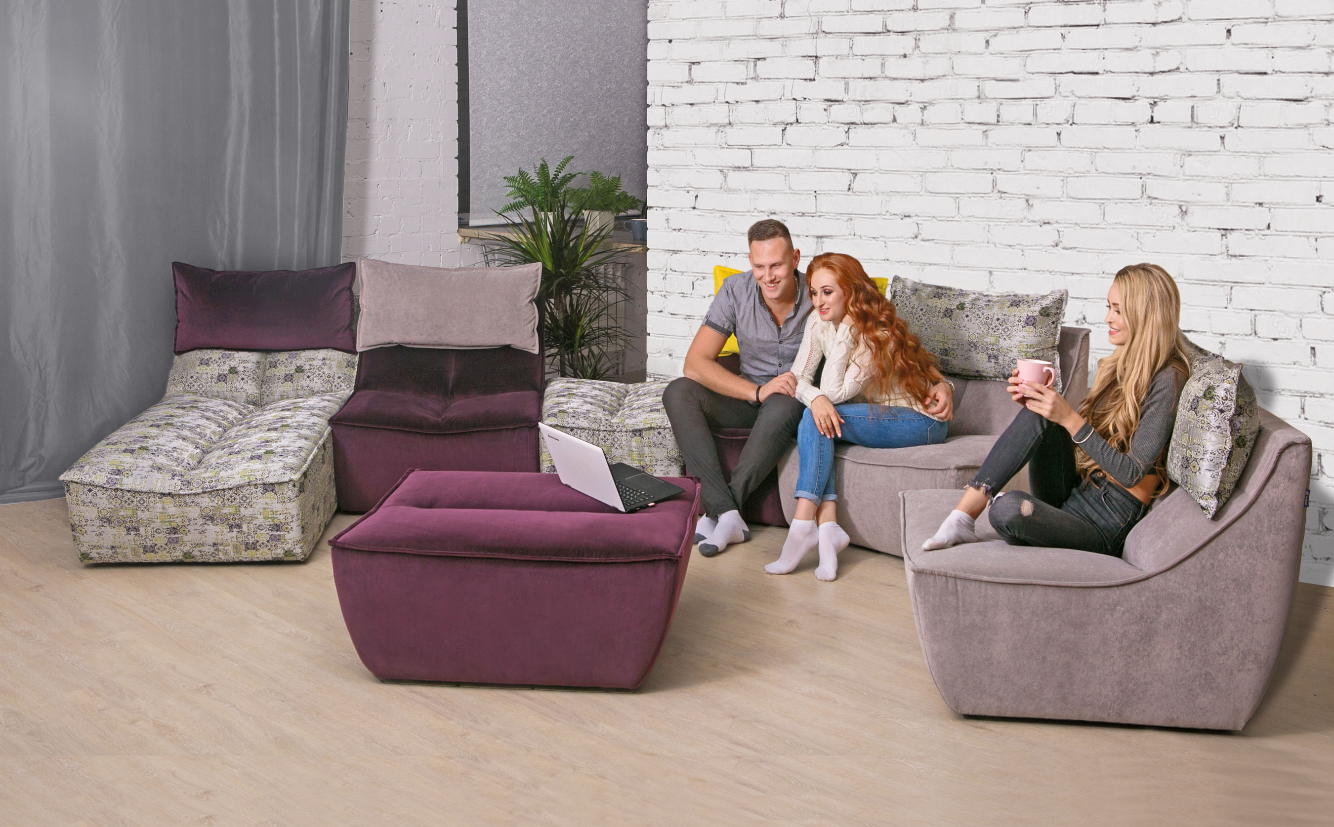 Диван угловой «Комфорт» в современном стиле с яркими подушками