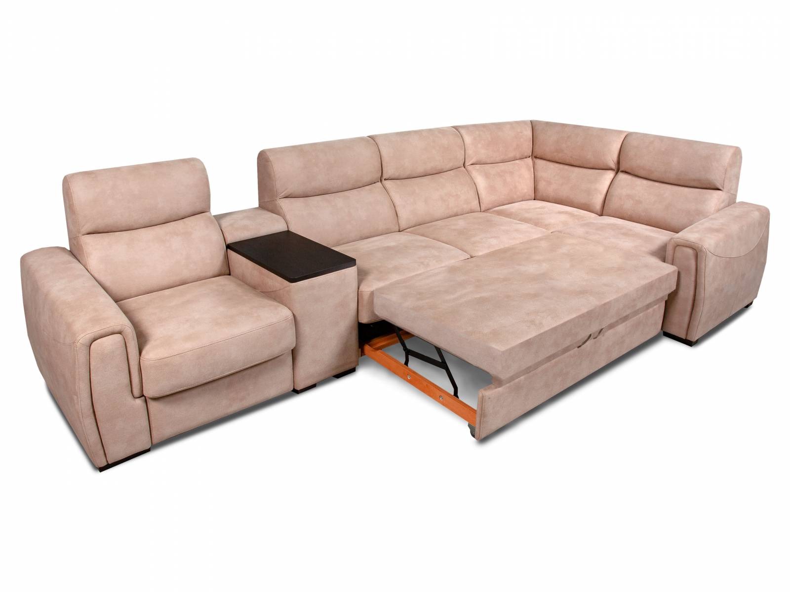 Современный угловой диван со спальным местом. Механизм: тик-так. Деревянные ножки.
