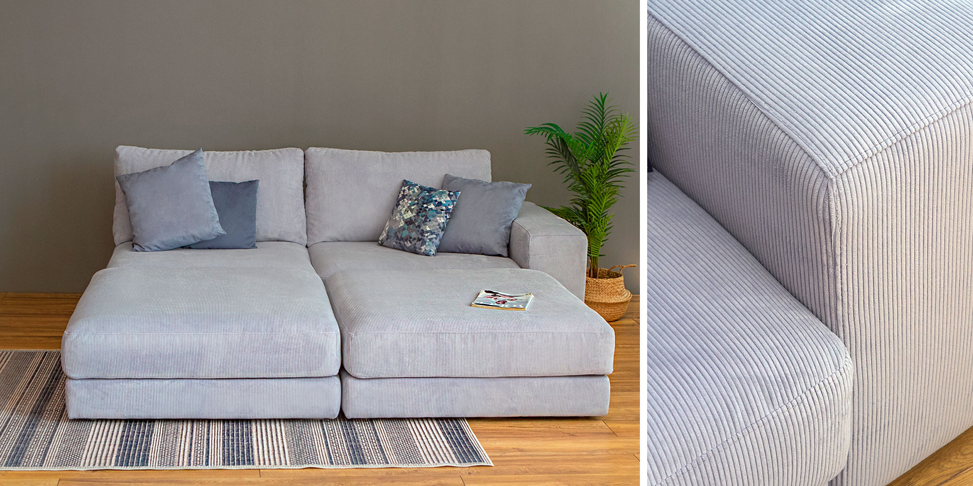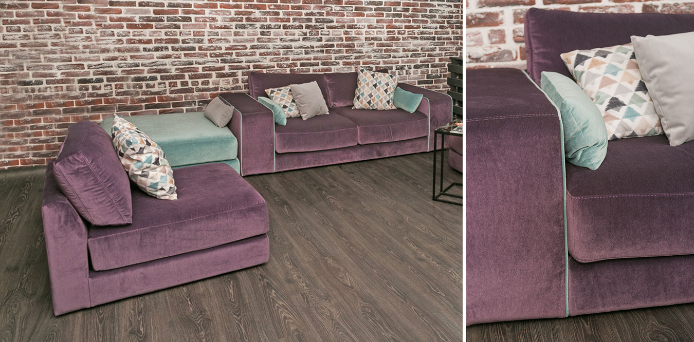 Стильный и современный дизайн. Комбинированная обивка. Спинка-подушки.