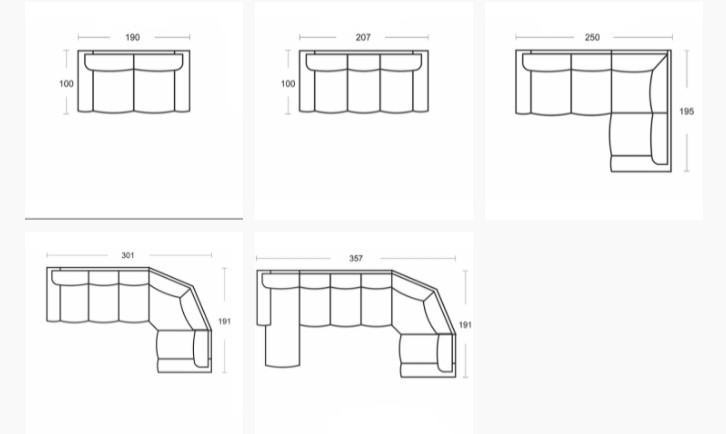 Габариты (ШхГхВ): 252х97х95 см (можно изменить). Обивка: ткань, экокожа, натуральная кожа. Более 1000 вариантов цвета.