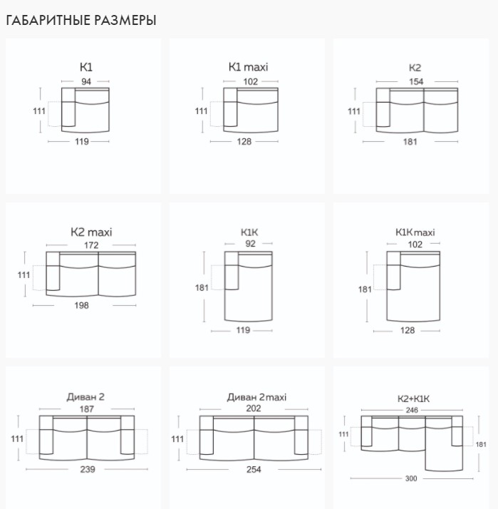 Габариты (ШхГхВ): 254х170х80 см (можно изменить). Обивка: ткань, экокожа, натуральная кожа. Более 1000 вариантов цвета.