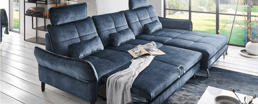 Размер: 266x230x79/95 см. Диван с функцией сна и скрытым ящиком для постельных принадлежностей.