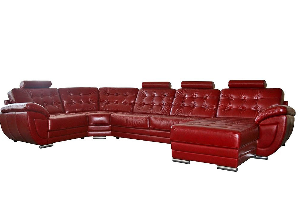 Большой крупногабаритный модульный диван с двумя углами оборудован емкостью для постельных принадлежностей и съемными мягкими боковинами. Изготовлен в современном стиле модерн и предназначен для размещения в гостиной для отдыха. Особый шик, долговечность и комфорт придают обивка из натуральной кожи и наполнение из эластичного пенополиуретана. Широкое раскладное сиденье с легкостью уместит до шести человек. Диван идет без подушек в комплекте. Наличие оттоманки.
