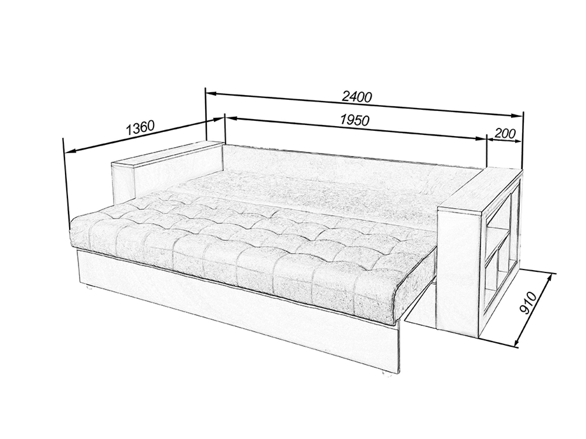 Размер (ДхШхВ): 1970x1000x900 мм. Механизм трансформации: клик-кляк.