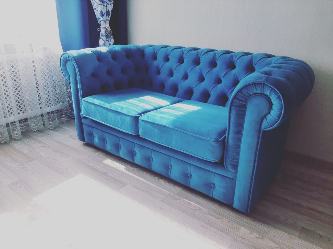 Прямой диван Честер синего цвета