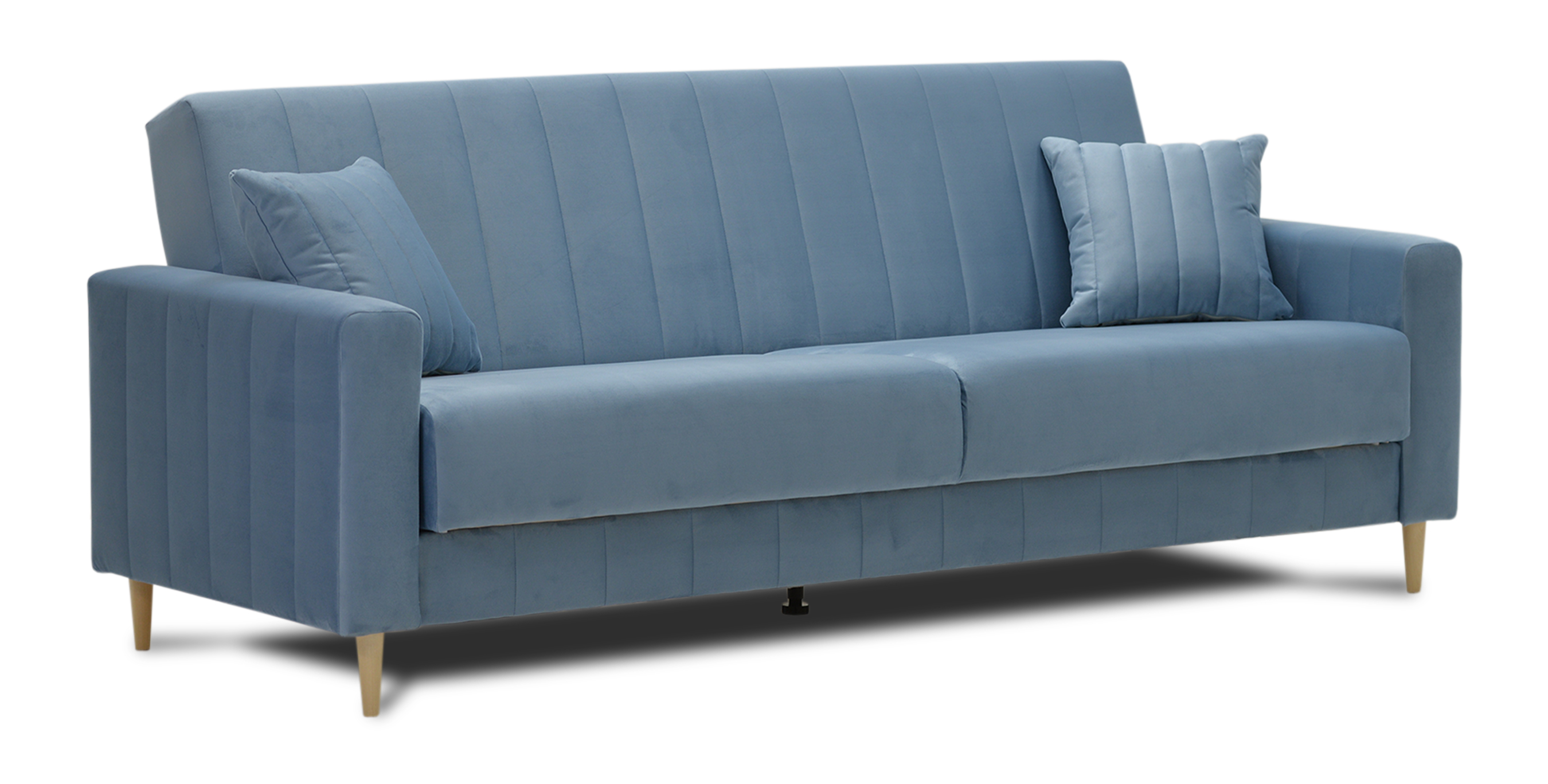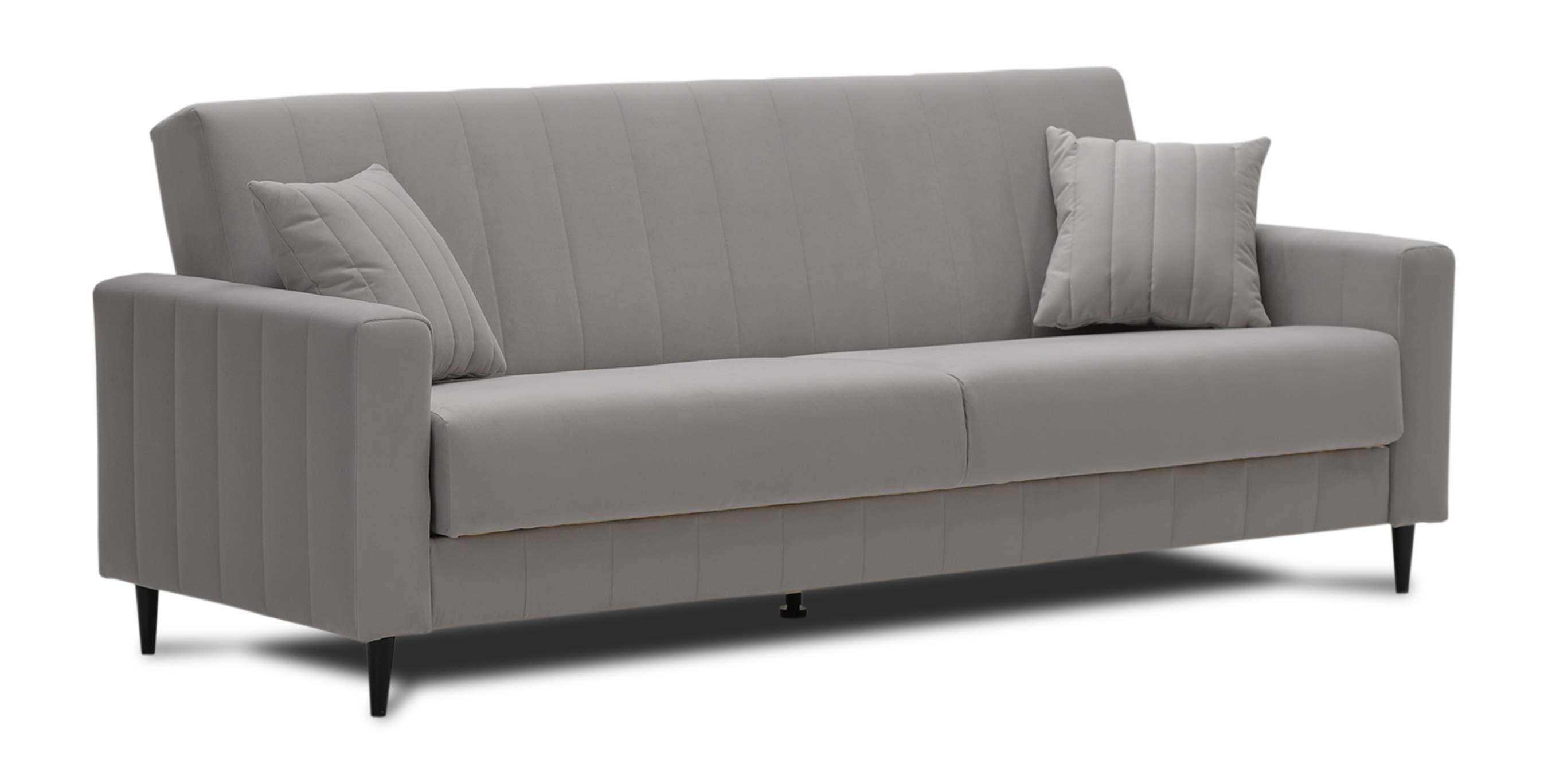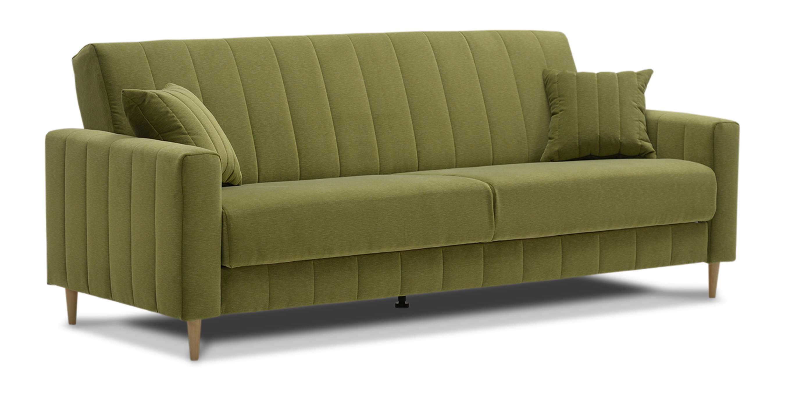 Эмма - современный диван на высоких деревянных ножках. Прямые формы и вертикальная стежка придают дивану сдержанность и элегантность.