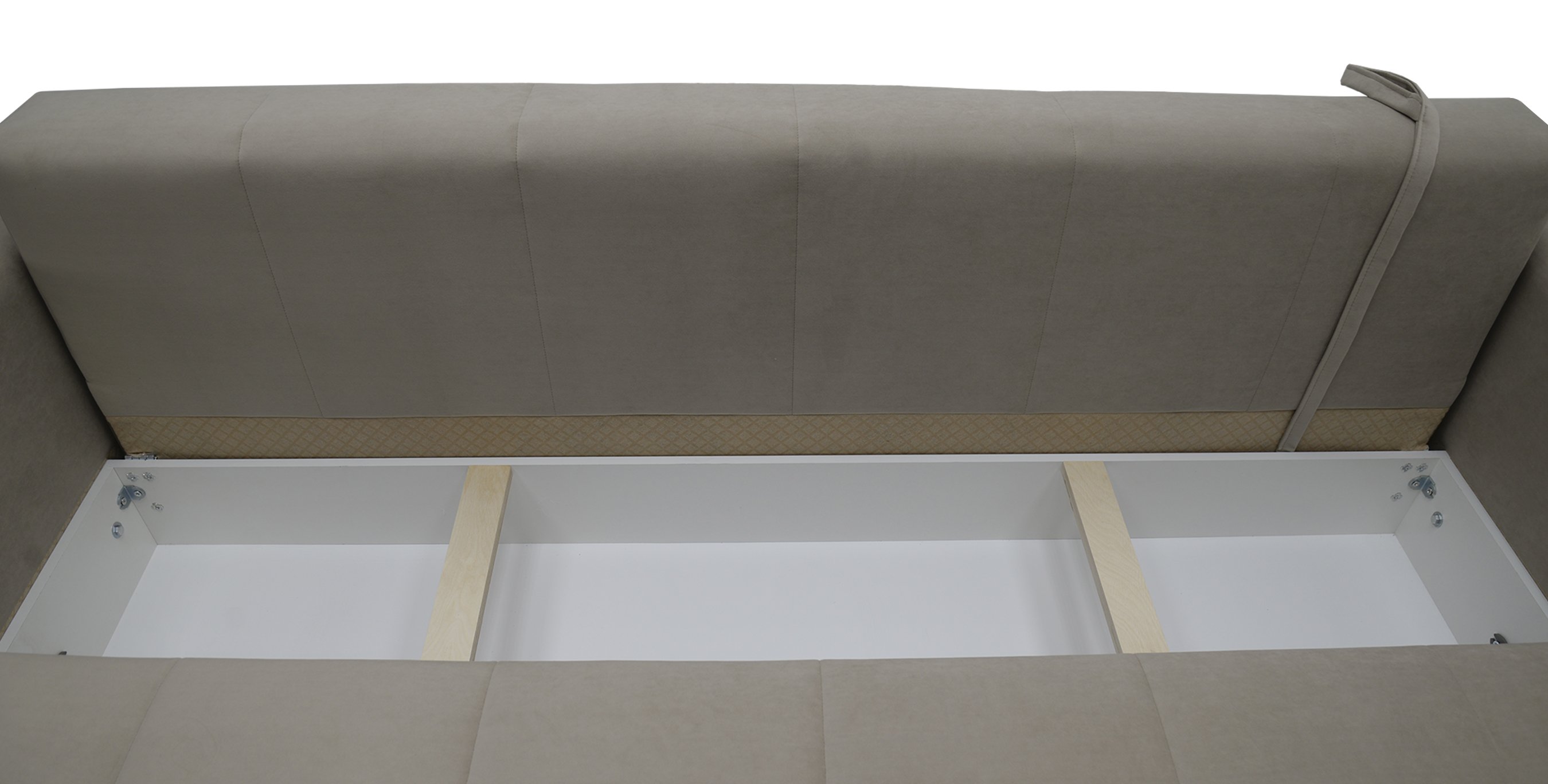 Диван оснащен вместительным ящиком для хранения постельных принадлежностей.