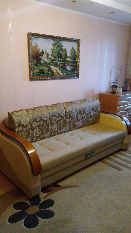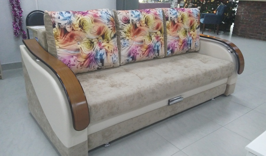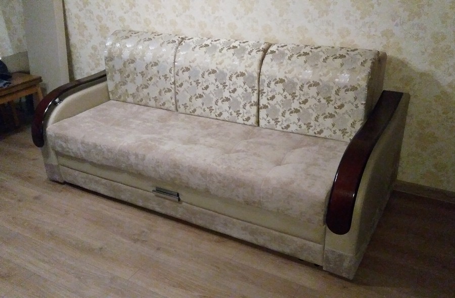 Удобный диван с металлическим каркасом и двумя вариантами спального места.