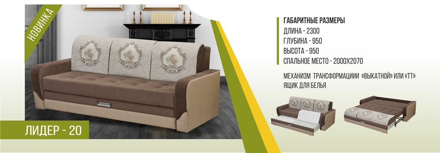 Спальное место: 1200х1900 мм. Механизм раскладки: Книжка. Бельевой ящик.
