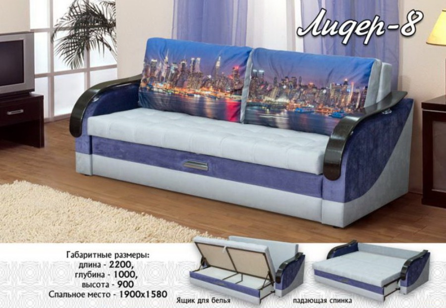 В комплект входят две декоративные подушки. Механизм: книга. Ящик для белья.