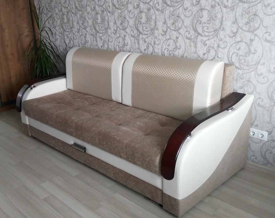 Удобный диван с металлическим каркасом и двумя вариантами спального места.