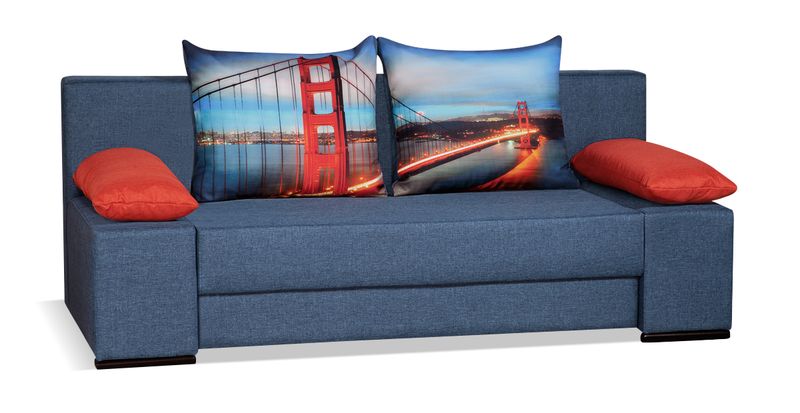 Диван оснащен механизмом раскладки и вместительным ящиком для белья.