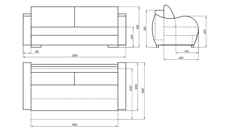 Габаритные размеры: 2300x1090x900 мм.