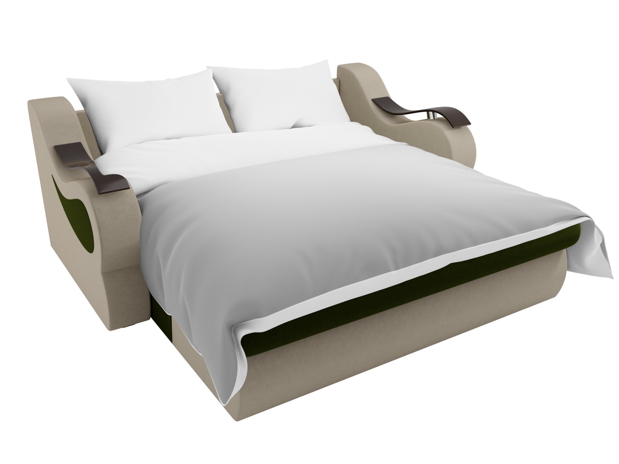 Прямой диван «Меркурий» Микровельвет зеленый \бежевый