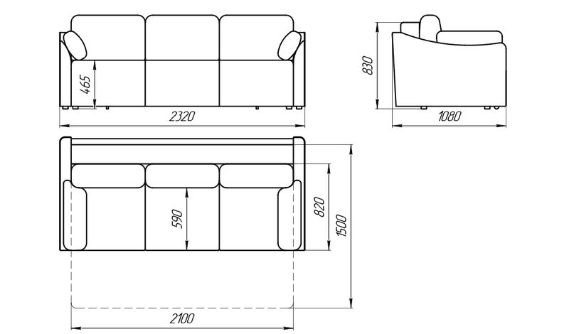 Габаритные размеры: 2320x1080x830 мм.