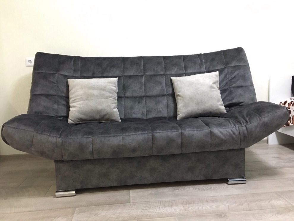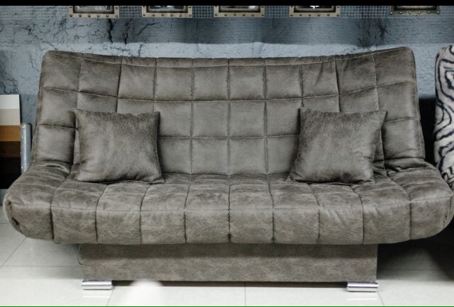 Очень стильный диван-кровать Стрекоза имеет компактные размеры и линейную конструкцию, которая будет прекрасно смотреться в современных интерьерах с небольшой площадью. Диван имеет механизм клик-клак, который превращает модель в очень комфортное и мягкое спальное место. Обивка выполнена к серого или темно-коричневом цвета на выбор и напоминает нубук.