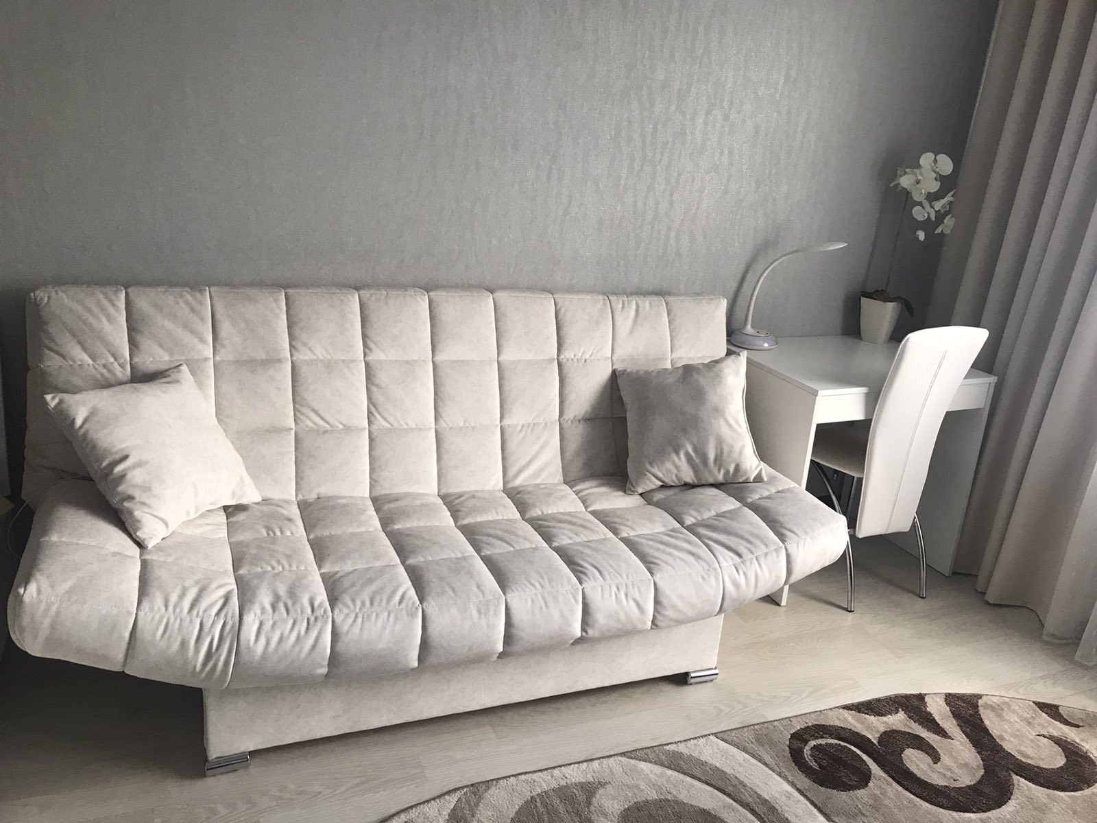 Две подушки в комплекте в цвет обивки изделия. Мягкий, компактный и функциональный.