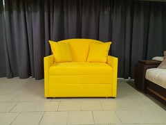 Удобный механизм раскладки. Спинка декорирована подушками.
