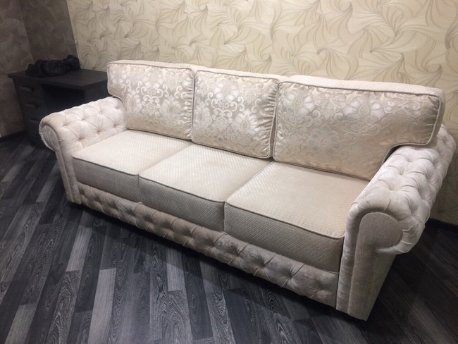 Изготовление под заказ. Современный универсальный диван бежевого цвета.