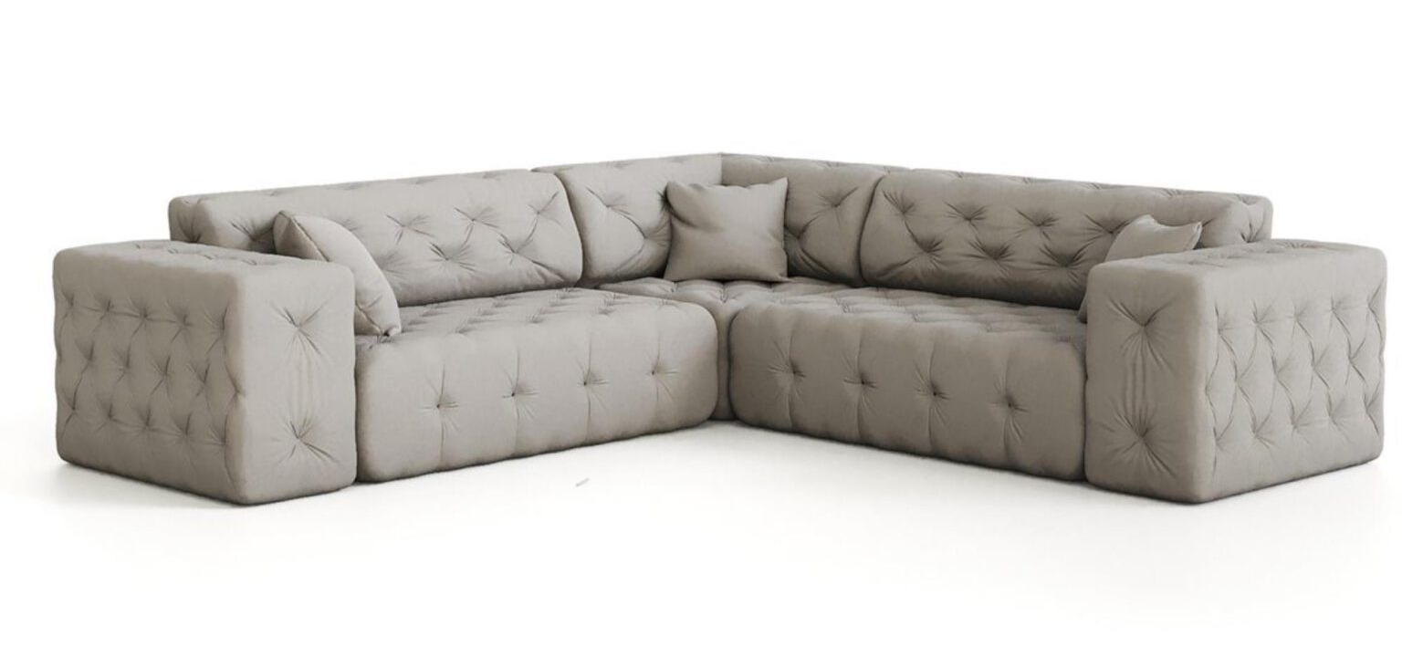 Классический угловой диван с бахрамой и стразами