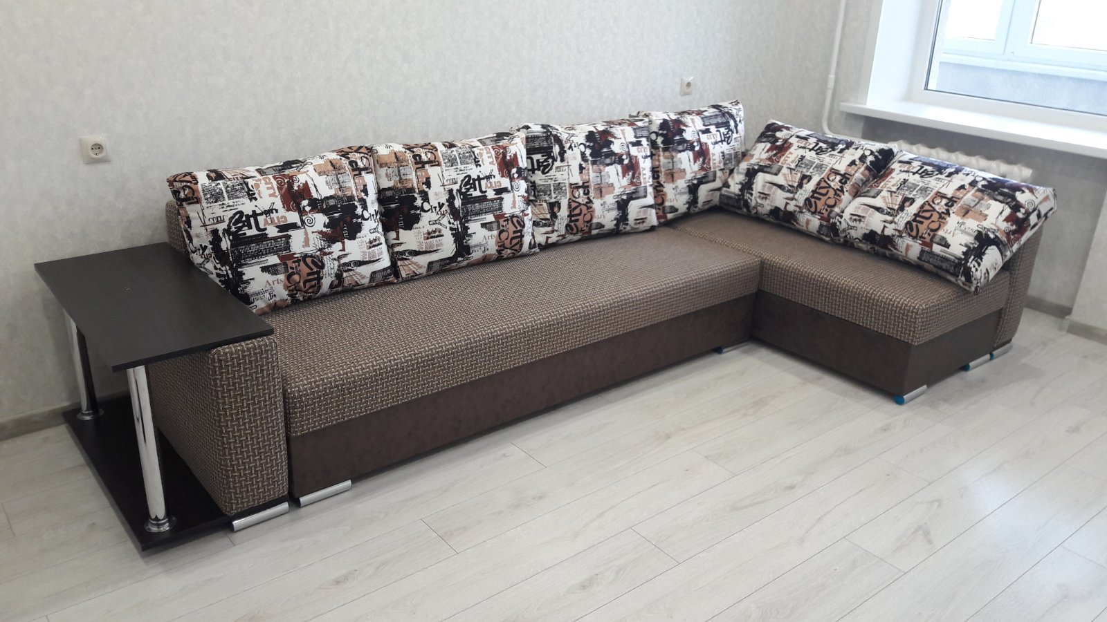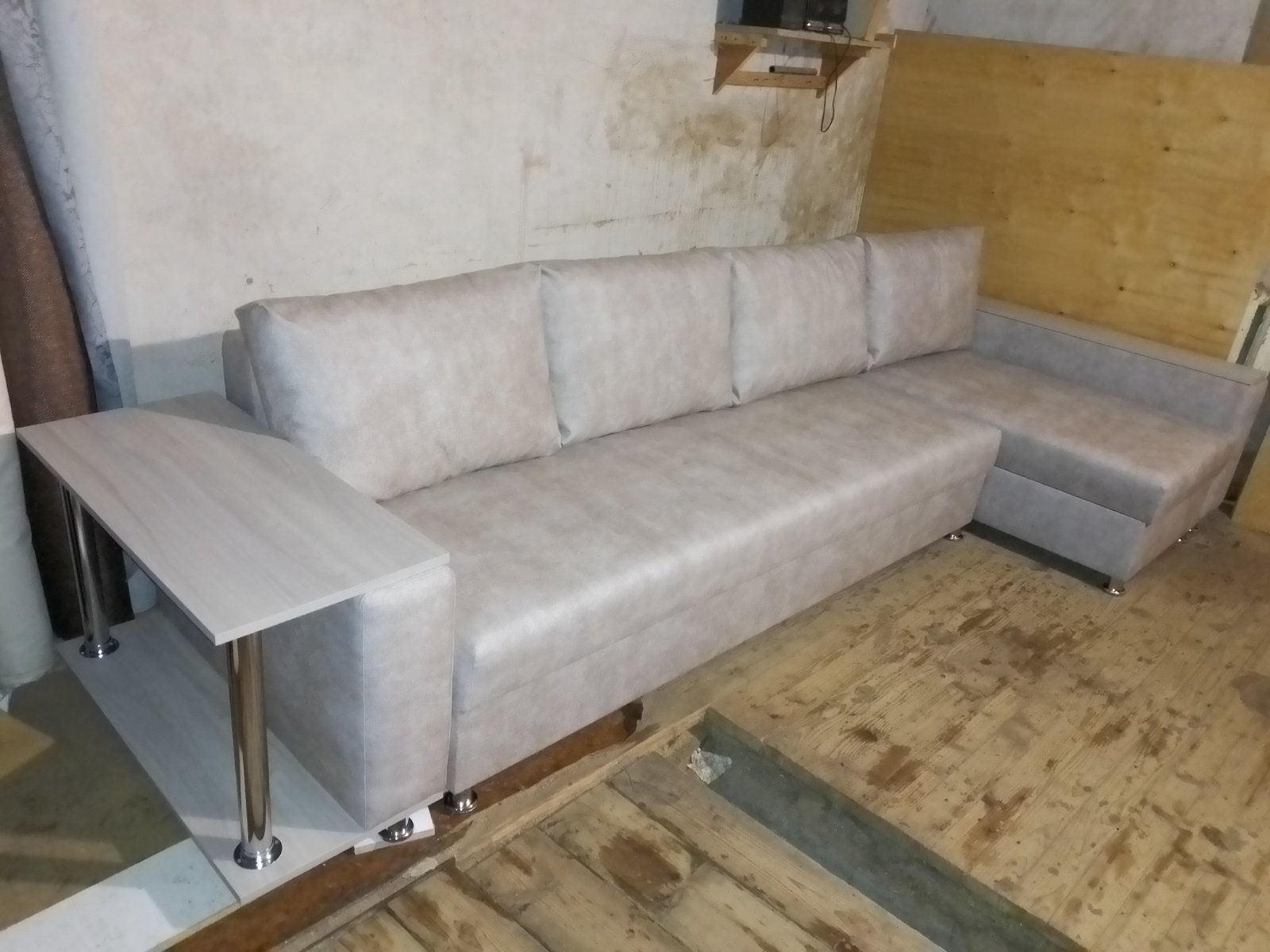 Удобный и функциональный диван со столом, механизмом трансформации и ящиком.