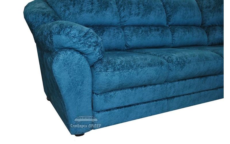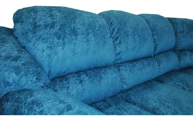 Данный угловой диван выглядит очень ярко и "позитивно" благодаря голубой обивке, выполненной из ткани, за счет чего во время отдыха тепло и уютно.