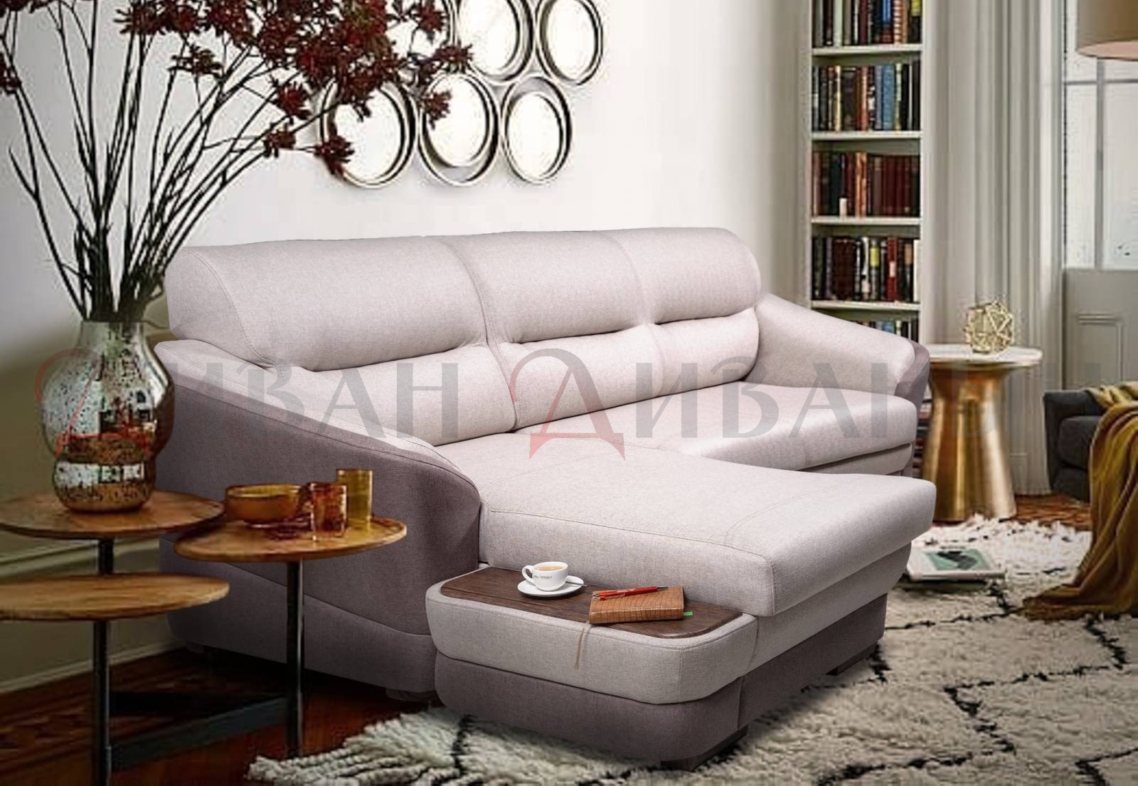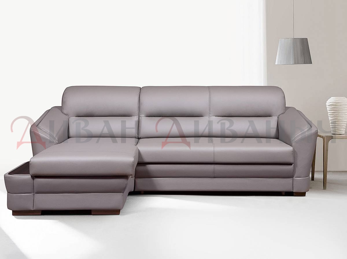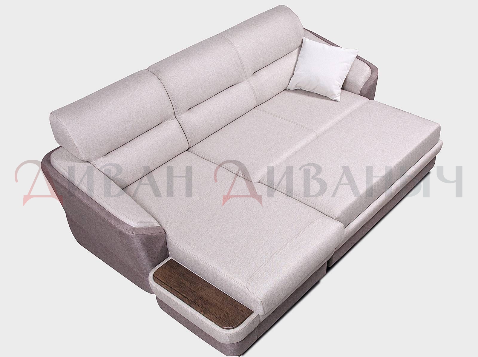 Современный стиль. Полки в боковинах и широкие подлокотники с деревянными вставками