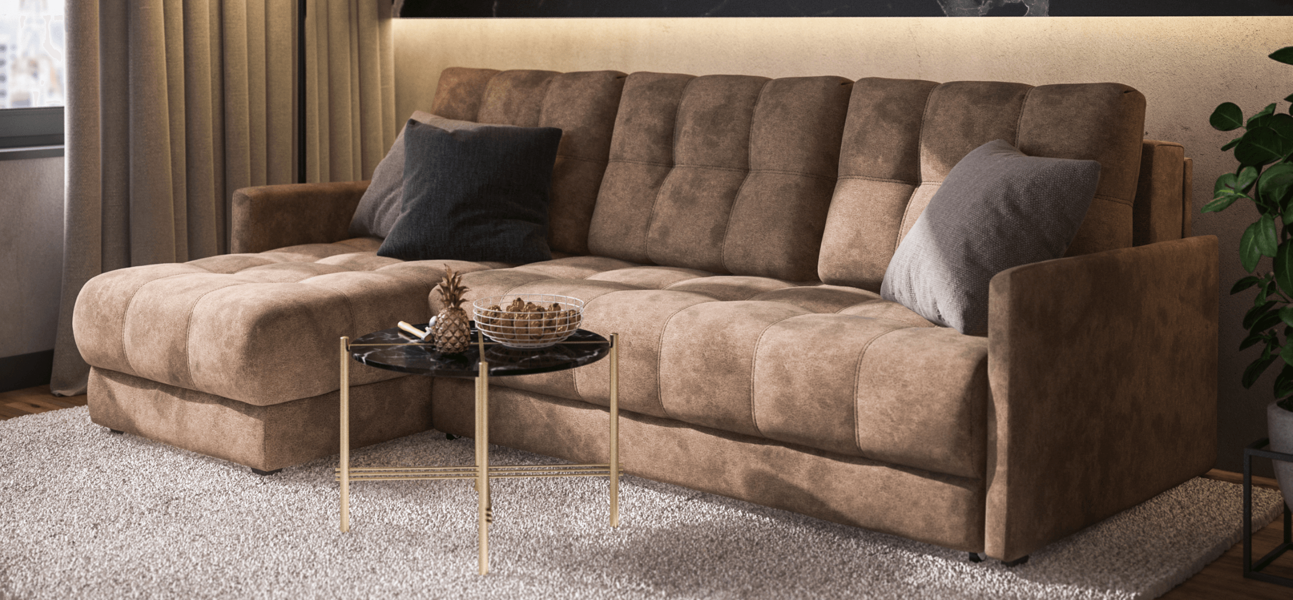 Модульный диван с индивидуальной конфигурацией для гибкой планировки.