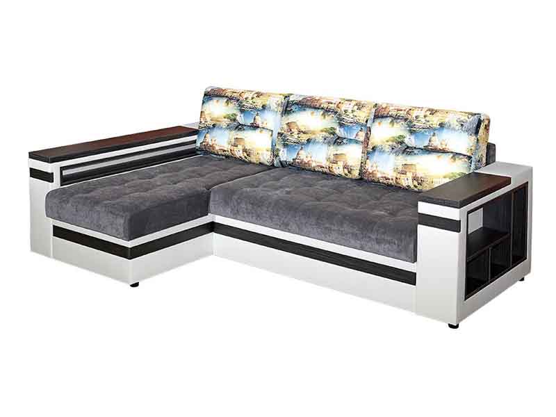Диван угловой «Престиж» с пуфом и белыми вставками