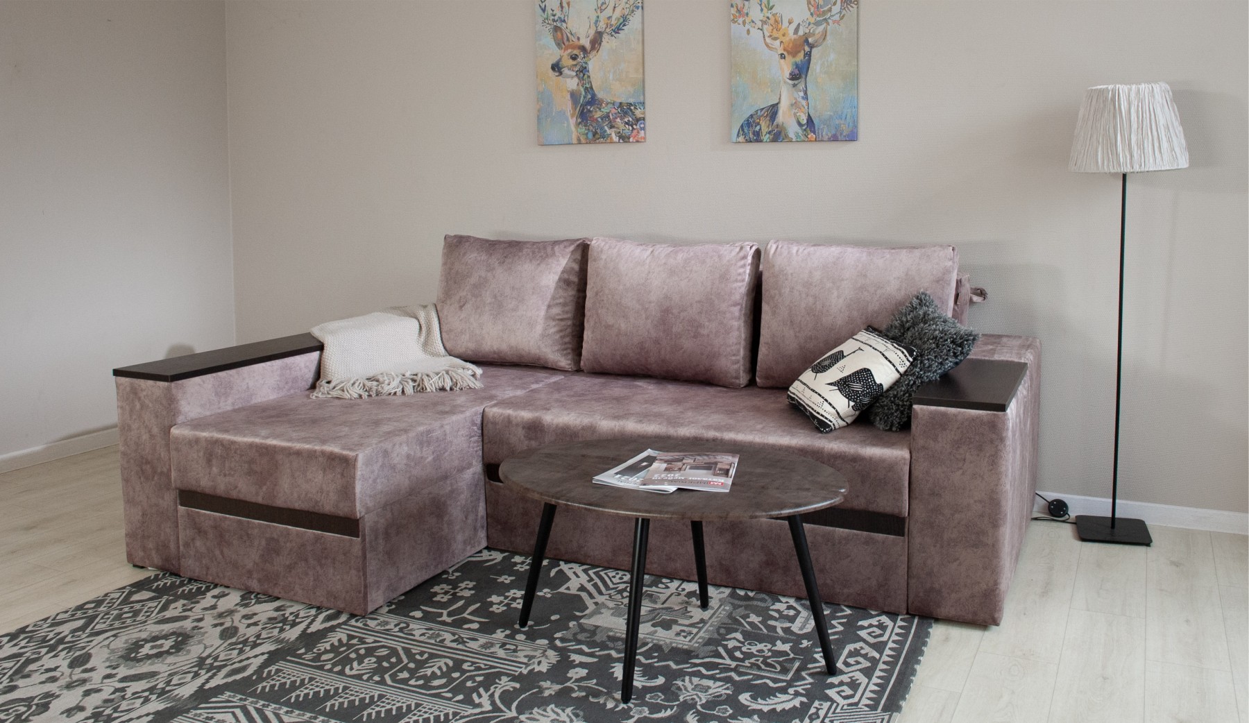Механизм трансформации: клик-кляк. Обивка: светлая с ярким рисунком.