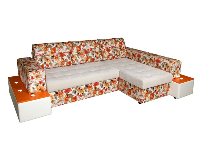 код 86765Просторный угловой диван со ступенью подставки с жесткой накладкой под дерево.