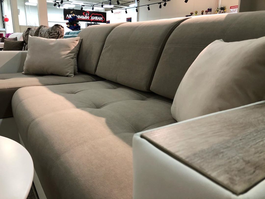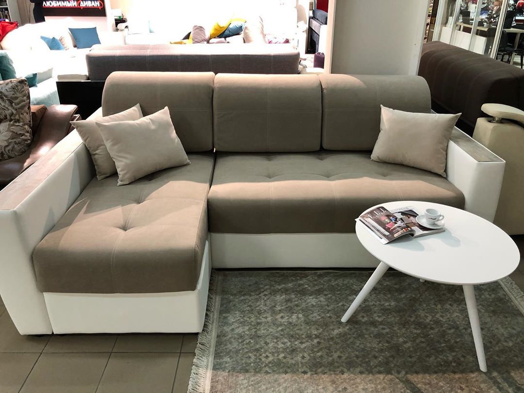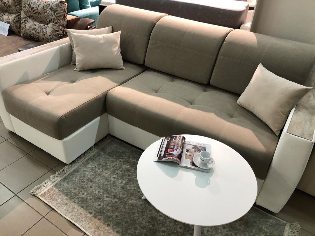Диван угловой «Престиж» с пуфом и белыми вставками