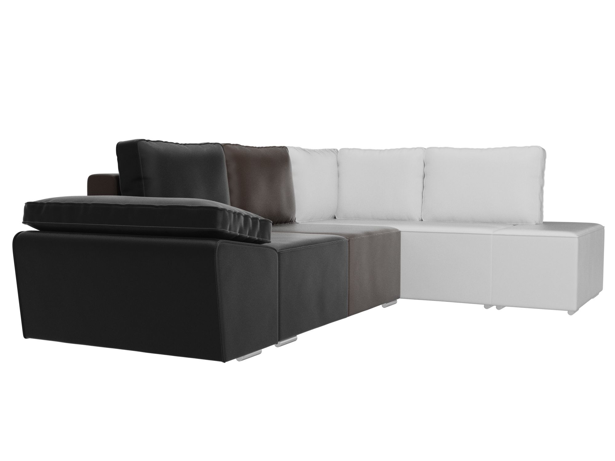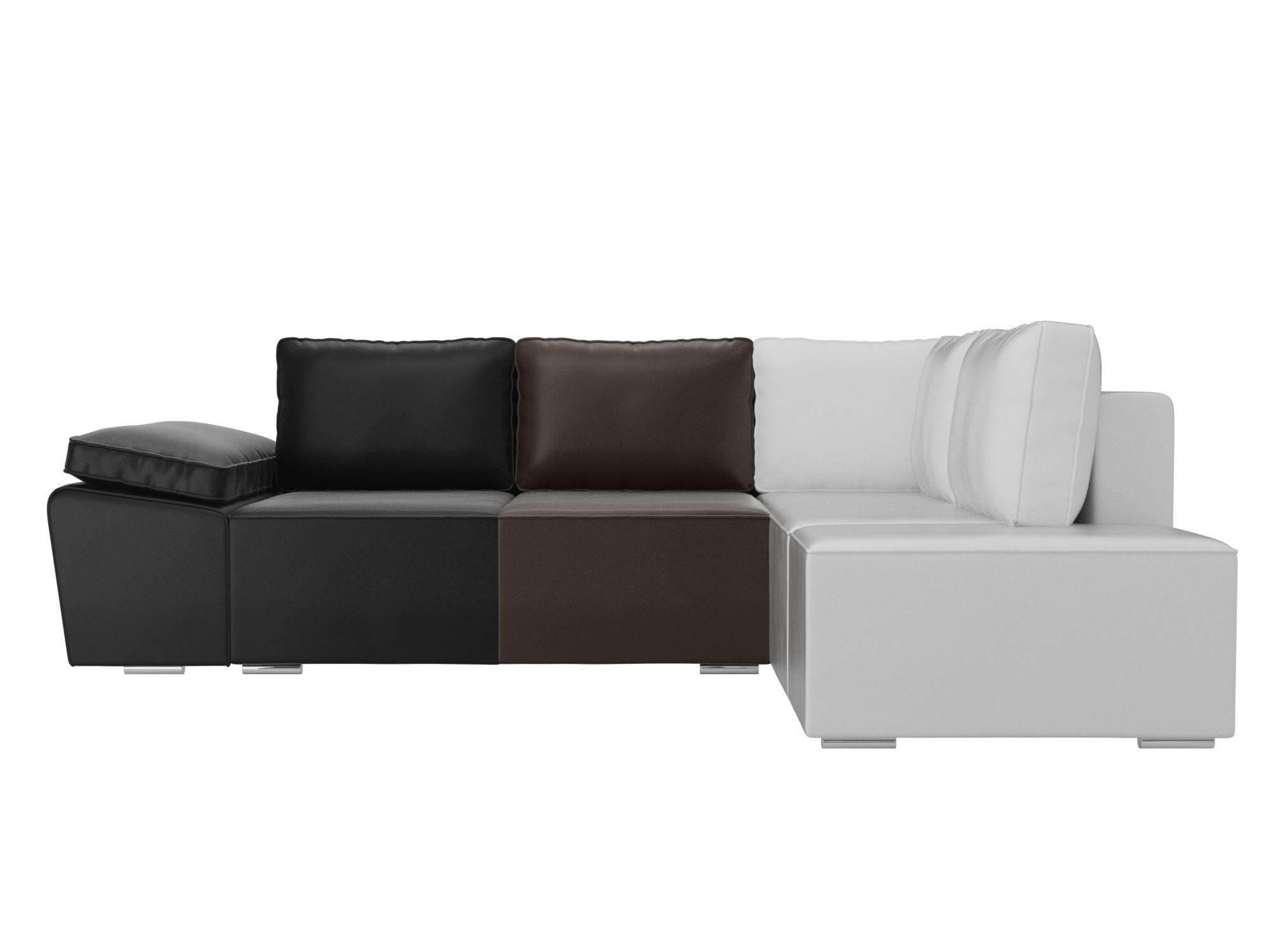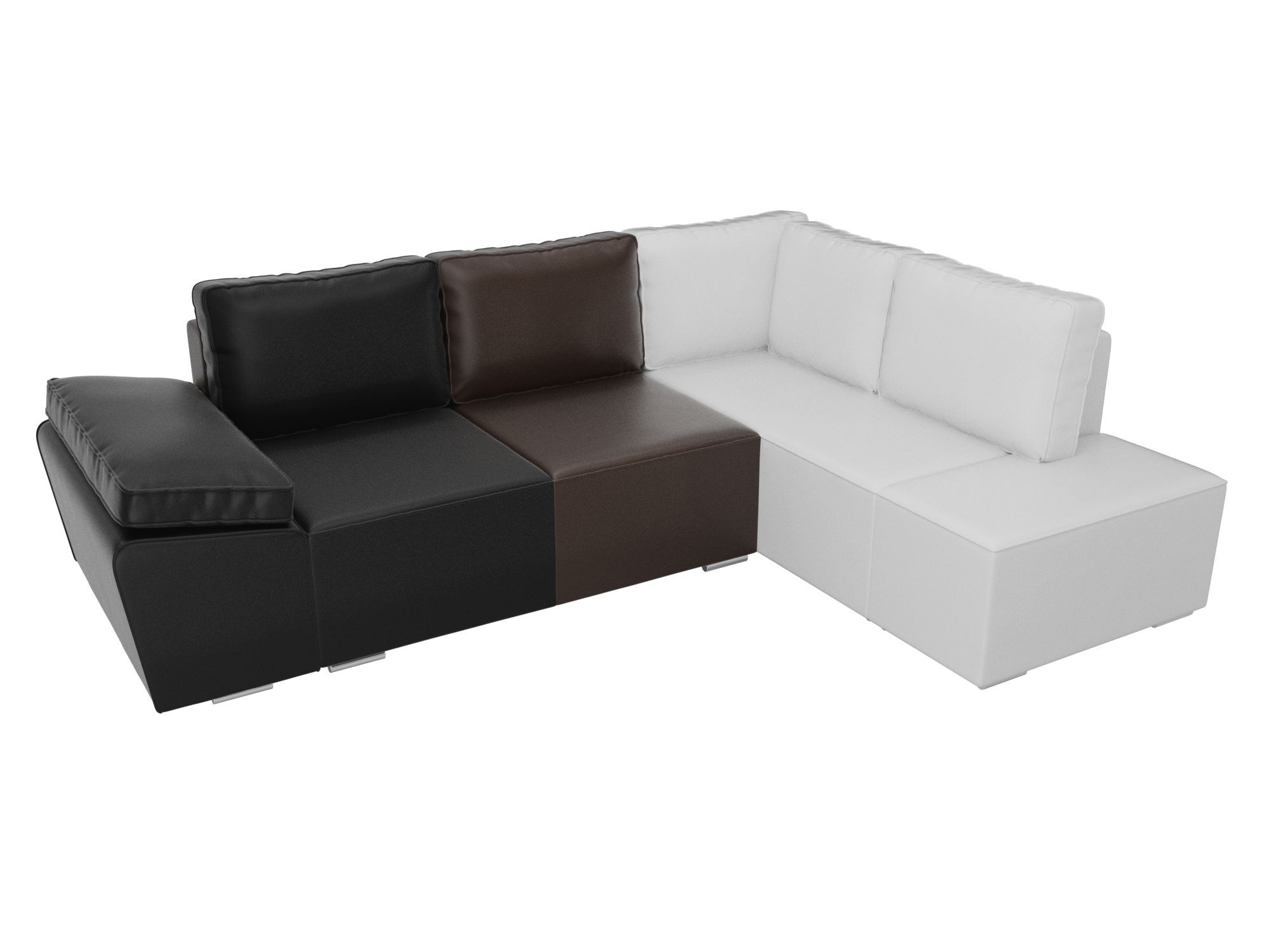 Угловой диван «Хьюго» правый угол Экокожа черный\коричневый\белый