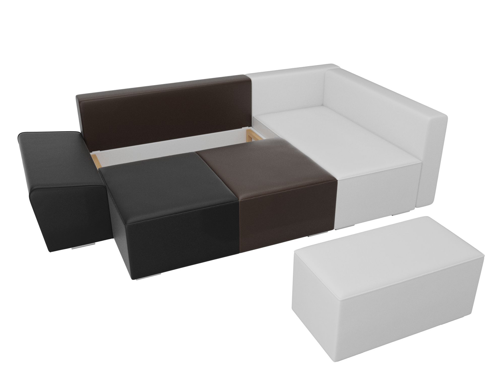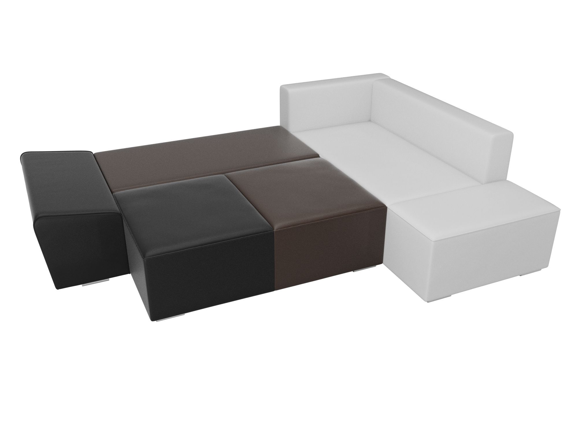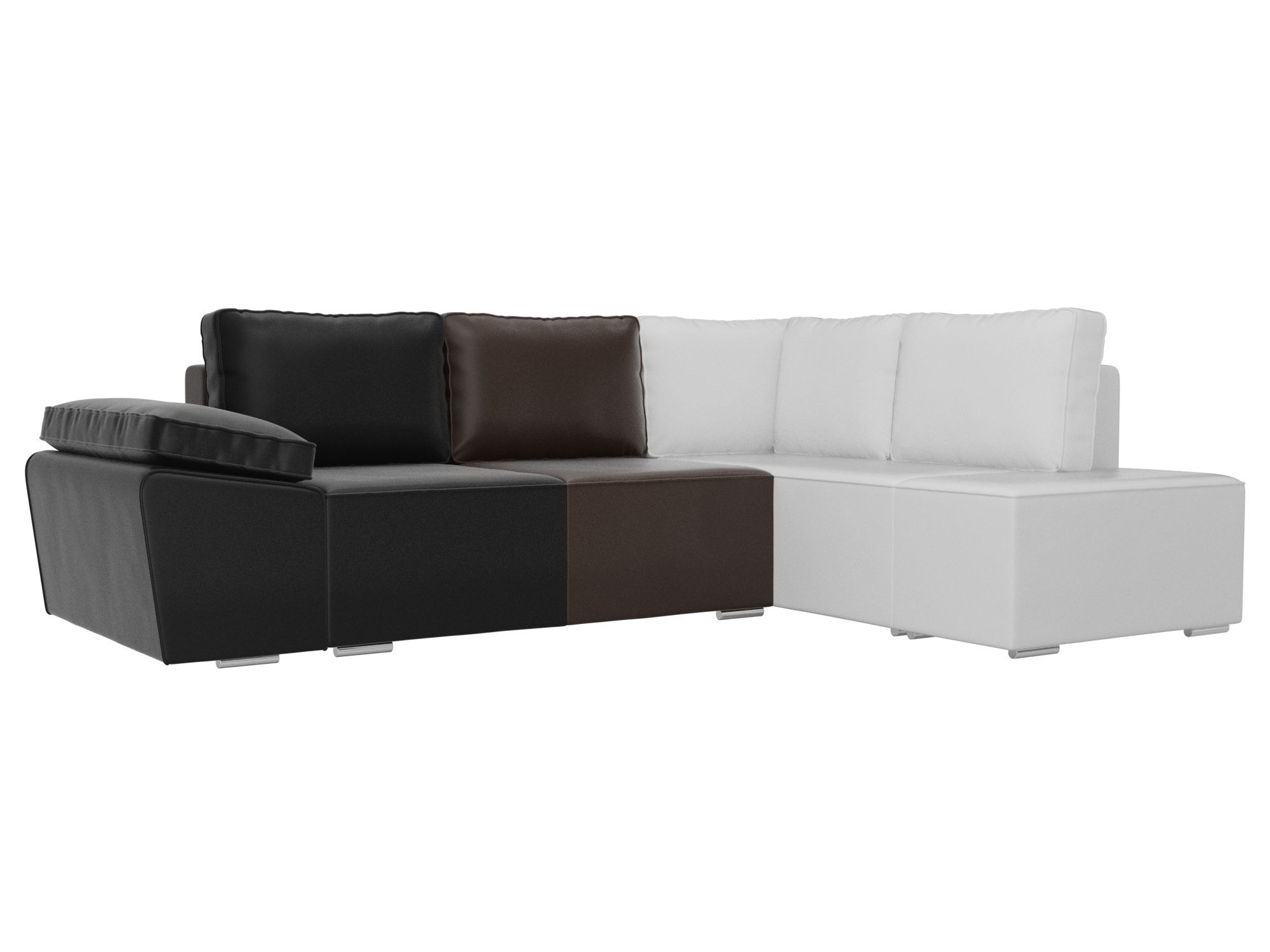 Угловой диван «Хьюго» правый угол Экокожа черный\коричневый\белый