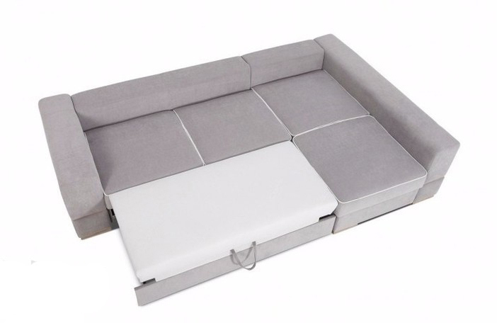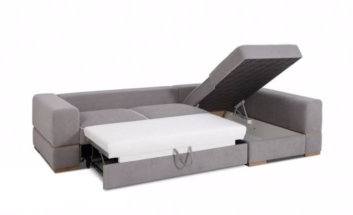 Диван оснащен механизмом трансформации и ящиком для белья. Возможны разные цвета обивки.