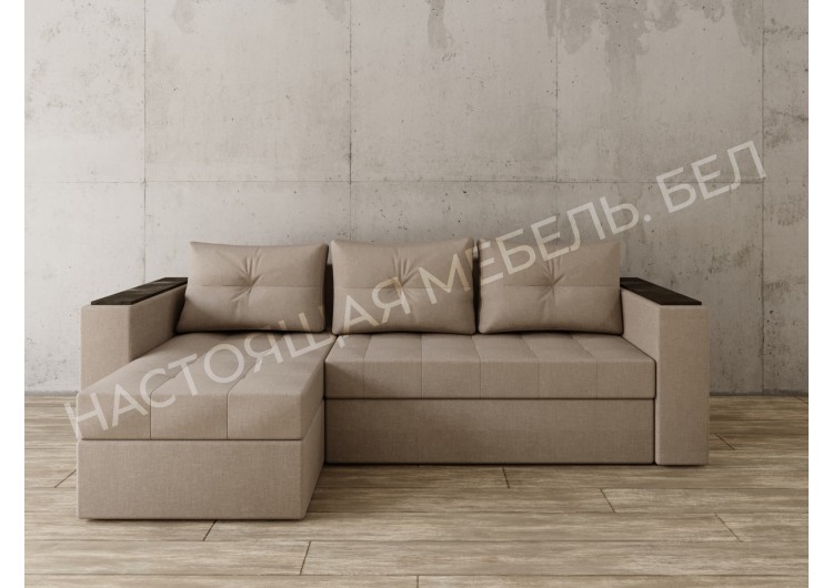 Диван оснащен легким механизмом раскладки и бельевым ящиком.