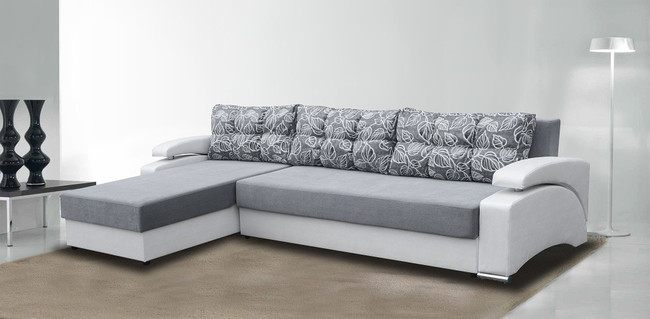 Угловой диван-кровать «Барселона 2» сочетает в себе не только стильный современный дизайн, но и удобство в эксплуатации. Для обивки использована ткань серого цвета, на подушках изображен легкий рисунок в виде листьев. Возможны и другие варианты цветового исполнения. Большой выбор цветов.