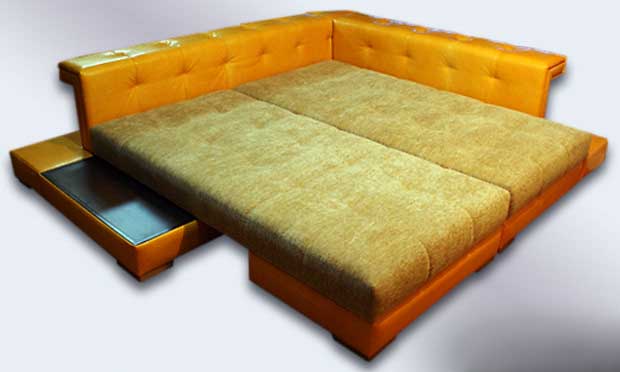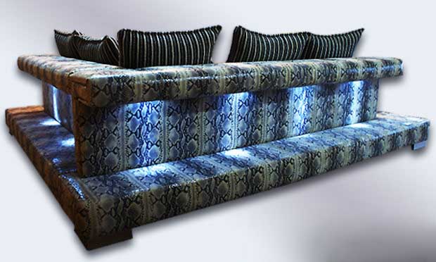 Диван-кровать «Энигма» - это синоним слова «роскошь», внушительные размеры, подсветка и богатая обивка создают воистину неповторимый образ. Диван комплектуется атласными подушками.