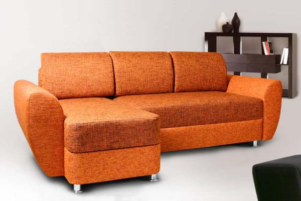 Диван «Милан-3» выполнен в одноцветном оформлении, декорирован яркой тканью оранжевого цвета с крупным плетением нитей.