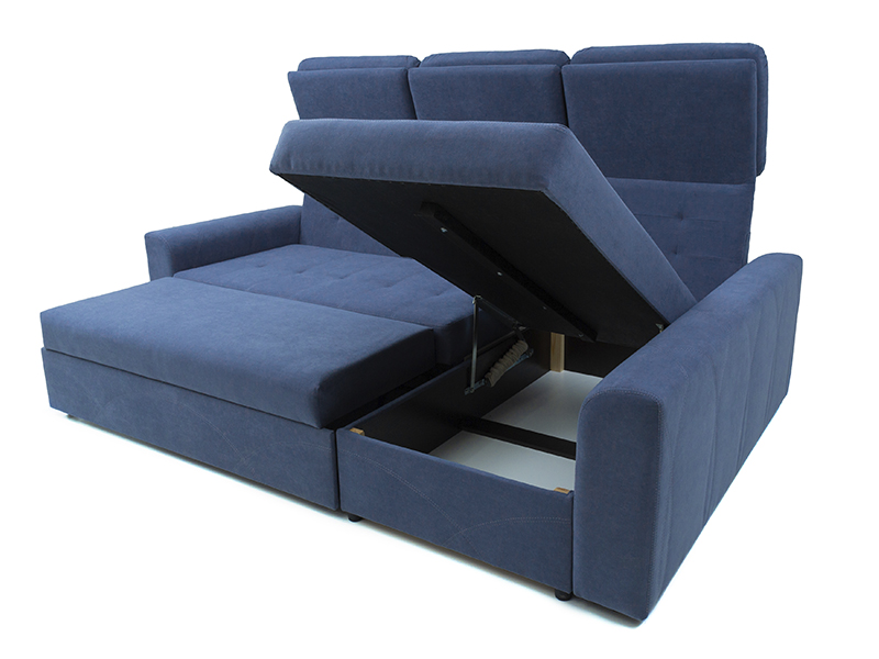 - Так как выдвижная часть дивана находится под основным сидением, отсутствует короб для хранения, но большое место для хранения находится в угловой части.