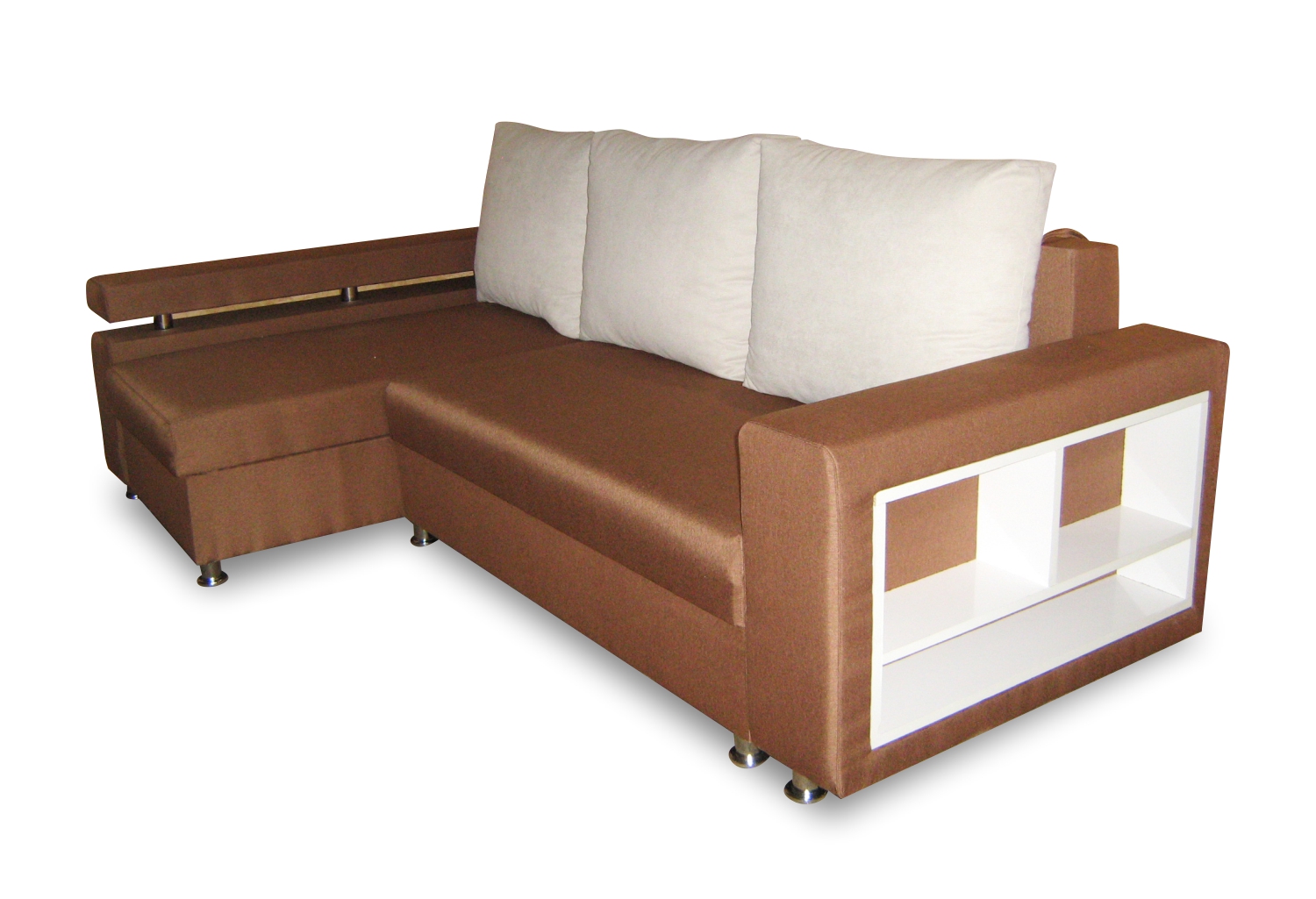 код 111257Современный диван со спальным местом, ящиком для хранения и полками.