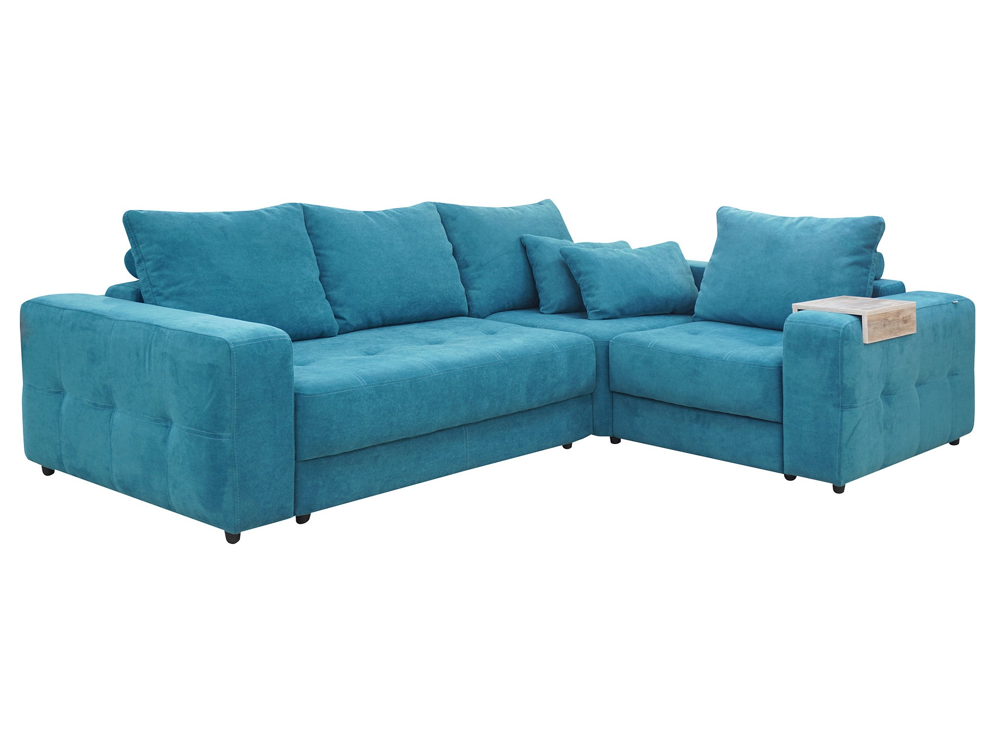 Приятная обивка из голубого флока с декоративной простежкой прямоугольных подлокотников и сидений. Мягкие подушки в качестве спинки удобны тем, что можно самостоятельно подобрать комфортный для себя угол наклона. Как приятное дополнение - эргономичная деревянная накладная подставка, легко крепящаяся к подлокотнику. Это самая мягкая модель линейки угловых диванов. Сдержанный и классический внешний вид дивана Mercury не только привлекает внимание, но и удивляет еще своей повышенной комфортабельностью. Основание дивана выше обычного на 7 см. На нем вы сможете без стеснения разместить гостей или самим использовать его как ежедневное спальное место.