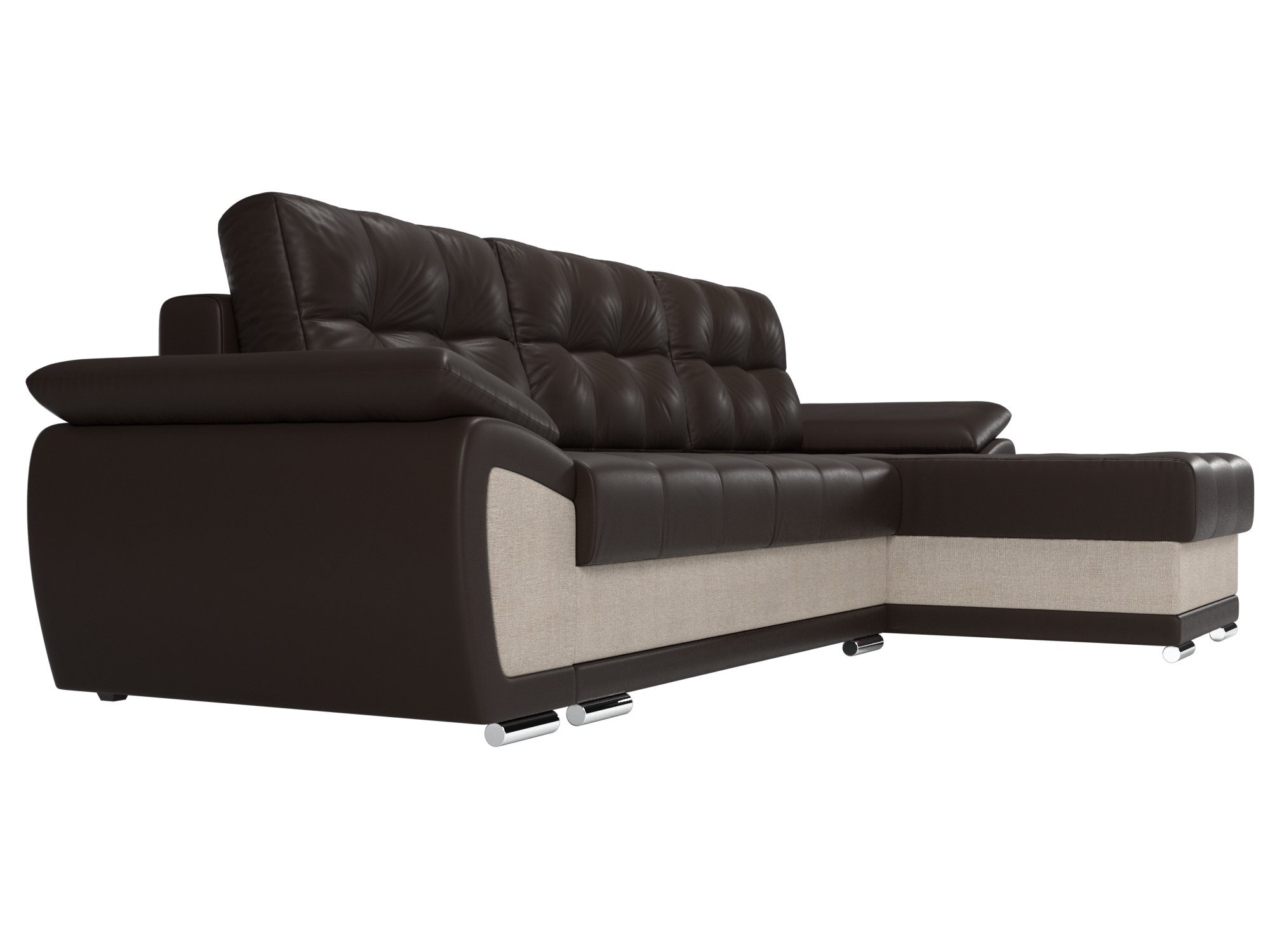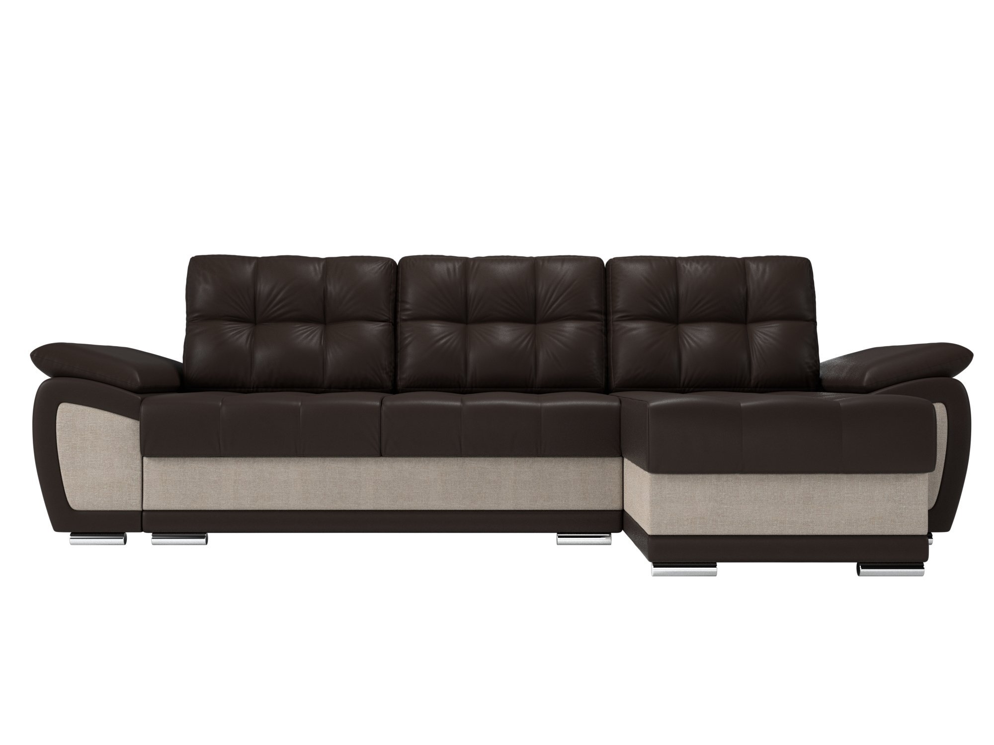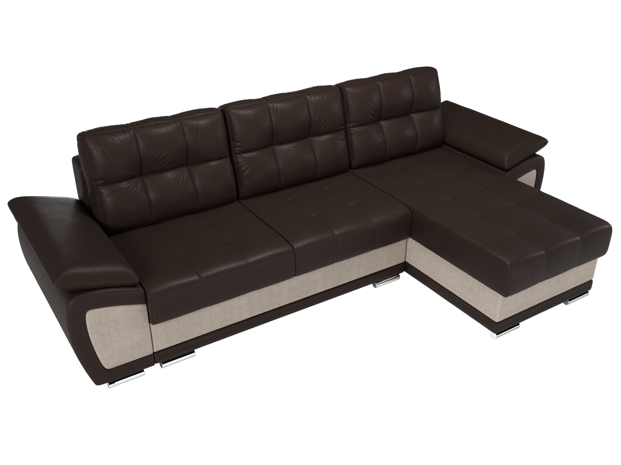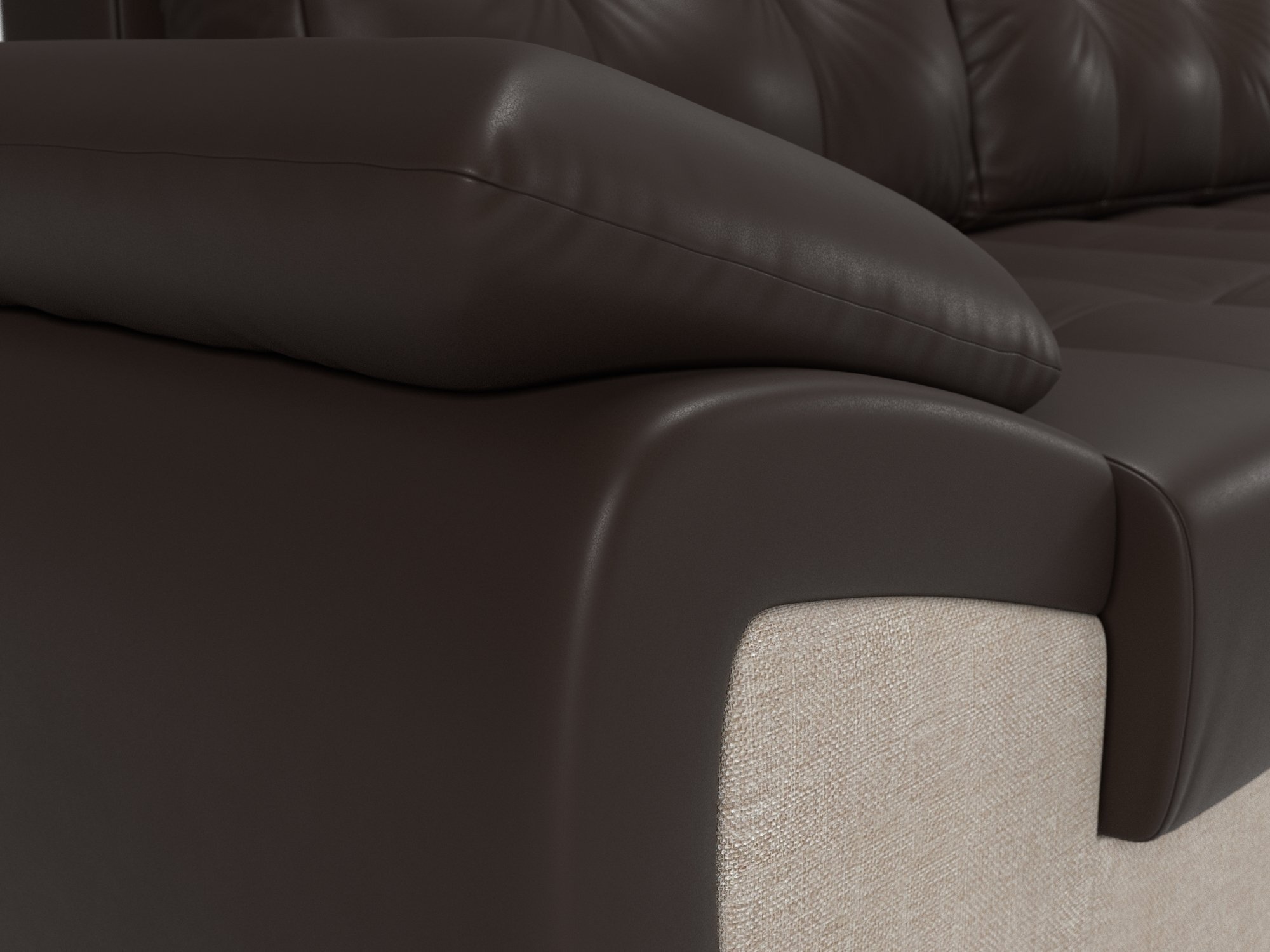 Угловой диван «Нэстор» Экокожа/Рогожка Коричневый/Бежевый